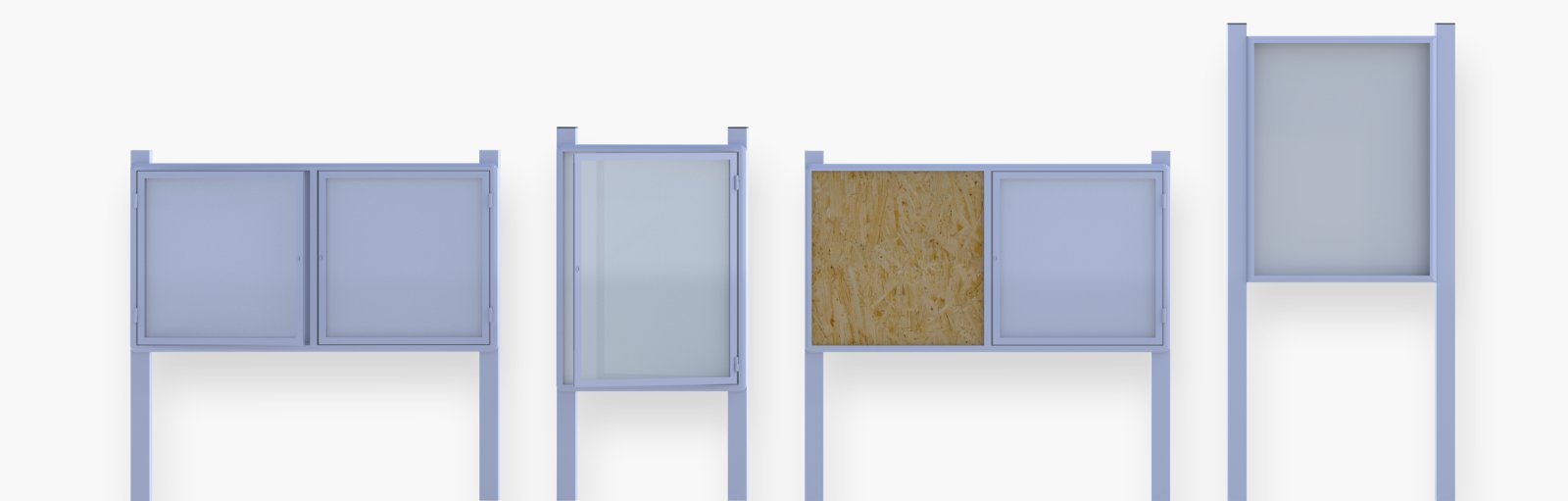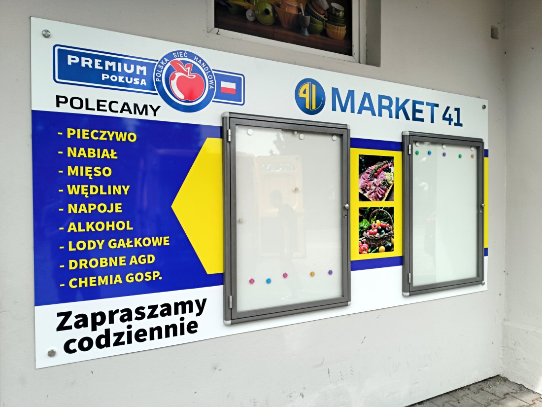 Tablice i gabloty ogłoszeniowe, naścienne i wolnostojące.
